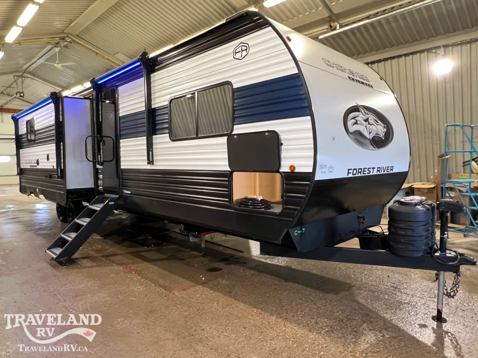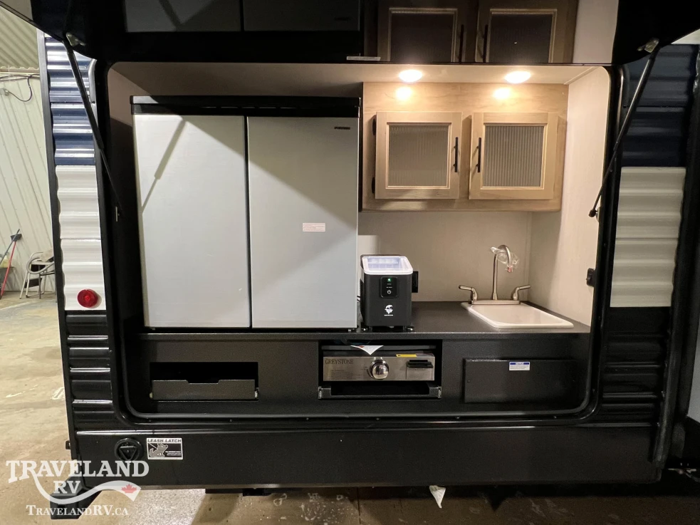 If space and privacy are top priorities for your family, the Cherokee Wolf Den 304SR has you covered. Built with a private rear bunkhouse featuring its own sofa and plenty of floor space, along with a private master bedroom and king-size bed, this travel trailer delivers extra comfort for the whole family. It’s also jam-packed with amenities like an outside kitchen, built-in air fryer, and hidden storage spaces (just to name a few). Starting at $64,987.