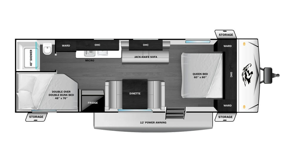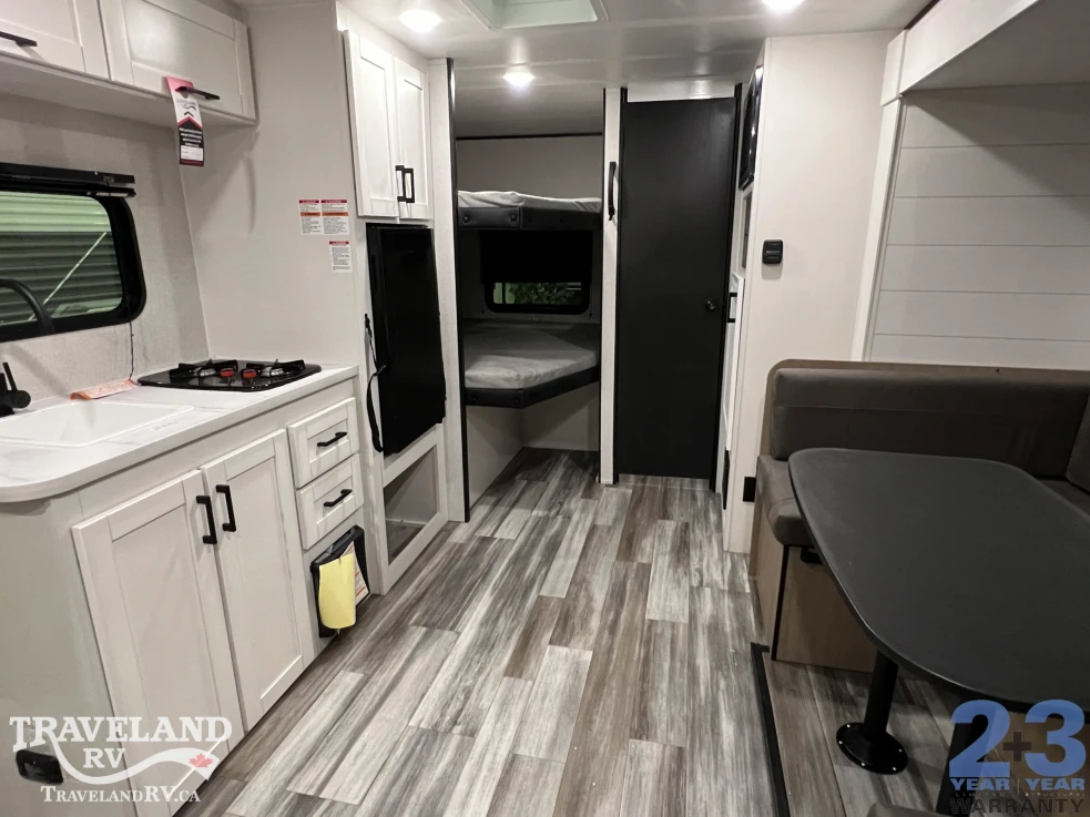 Need a compact travel trailer that still feels spacious? The Prowler 1802MBS maximizes floor space so everyone can move around comfortably without feeling cramped. A Murphy bed quickly converts into a sofa, while the U-dinette provides additional seating during the day. Finally, the double over double bunks include storage underneath, allowing for smart, space-saving solutions that don’t sacrifice comfort. Starting at $30,888.